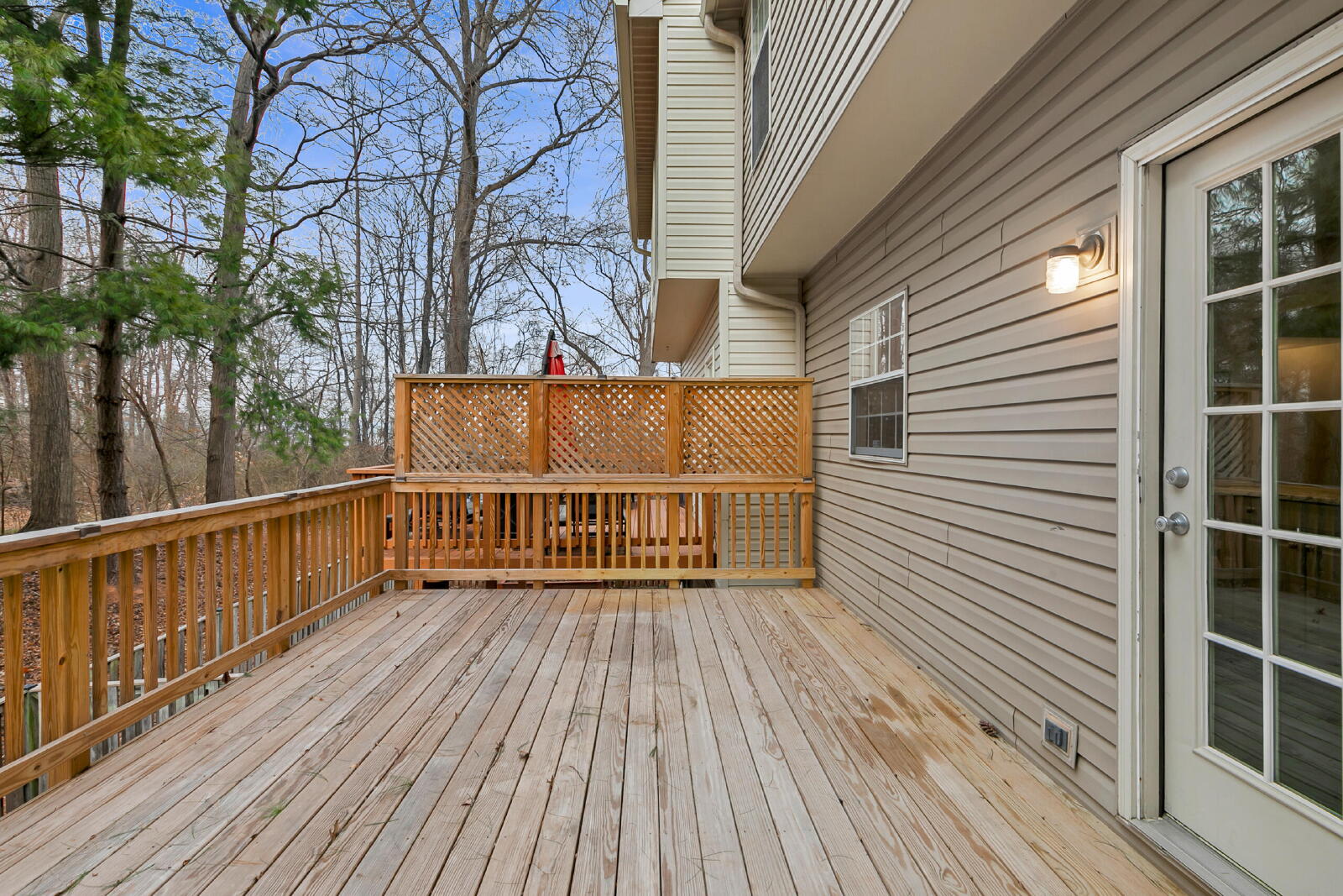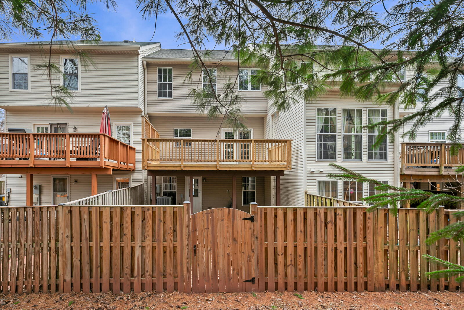 Home is immaculate and move in ready. Main level features gleaming hardwood floors with stainless steel appliances in kitchen (gas cooking) and dedicated dining space. Oversized deck backs to trees. Built-in on main living area is one of many upgrades. Upper level features 3 bedrooms, primary suite with walk in closet and separate tub and shower. 2 additional rooms with full bathroom. Entry level features additional bedroom/multipurpose room and laundry. Move in NOW.
